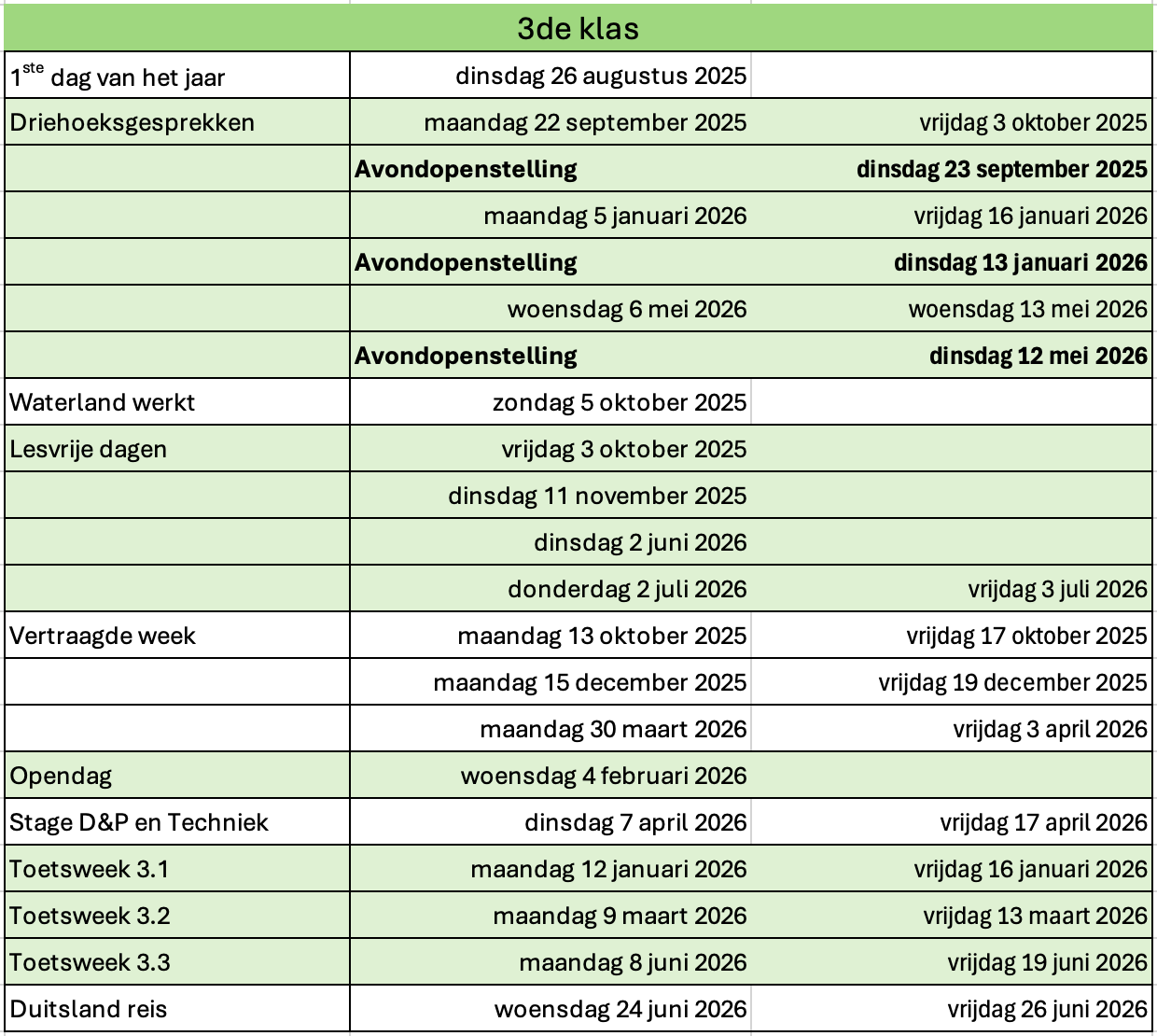 Vakanties en belangrijke datums